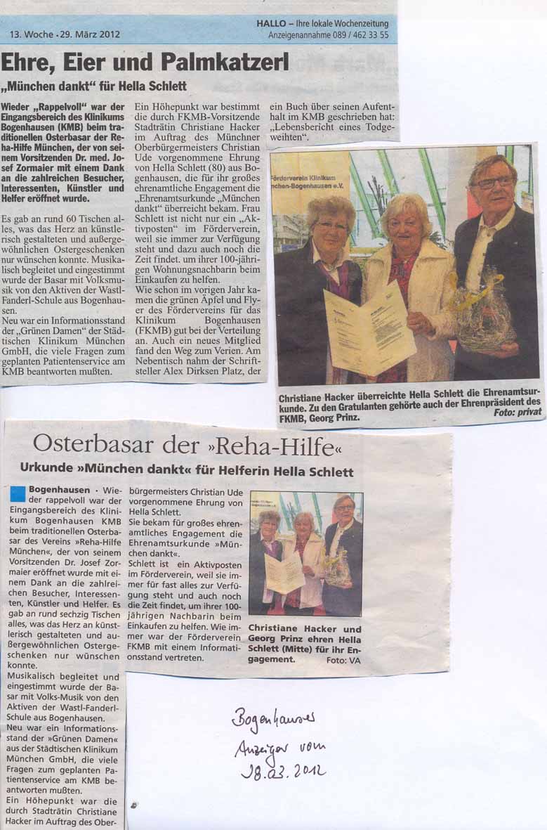 Operationsmethode möglich, die noch vor kurzem undenkbar gewesen wäre. ______________________________________________________________________________________ Samstag,13.Sept. 2014, 09:00 Uhr bis 17:00 Uhr Der traditionelle Flohmarkt am Klinikum Bogenhausen Leider musste der Flohmarkt wetterbedingt ausfallen. zum Archiv _____________________________________________________________________________________ 10. April 2014, um 18.30 Uh Hauptversammlung mit Neuwahlen zum Archiv ______________________________________________________________________________________